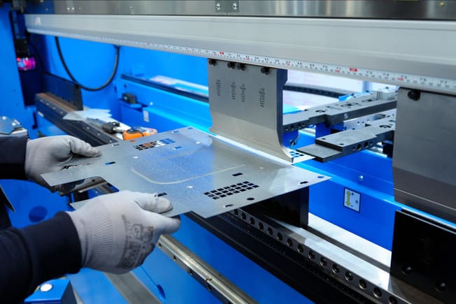 Plegadora CNC de 7 ejes con capacidad de plegado hasta 9mm de espesor en acero negro y 6mm acero inoxidable.